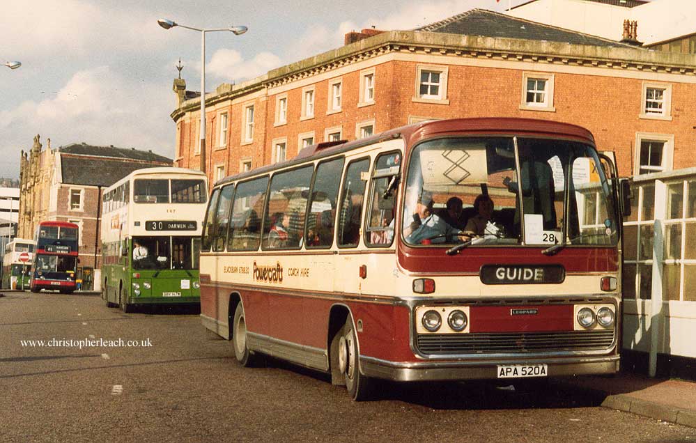 Yes the clocks will soon be going forwards an hour and we can look forwards to light nights when sometimes it's 22.30 before it goes dark. One evening I was sent to Blackburn with some trays of components that needed to be returned in a hurry so I had to wait for them. On this occasion it was a pleasure as the soft sun was still stong enough to take some great photos of buses in the town's bus station. The livery on Powercraft's Plaxton bodied Leopard made me think it had come for Rennie of Dunfermaline but that was not the case.