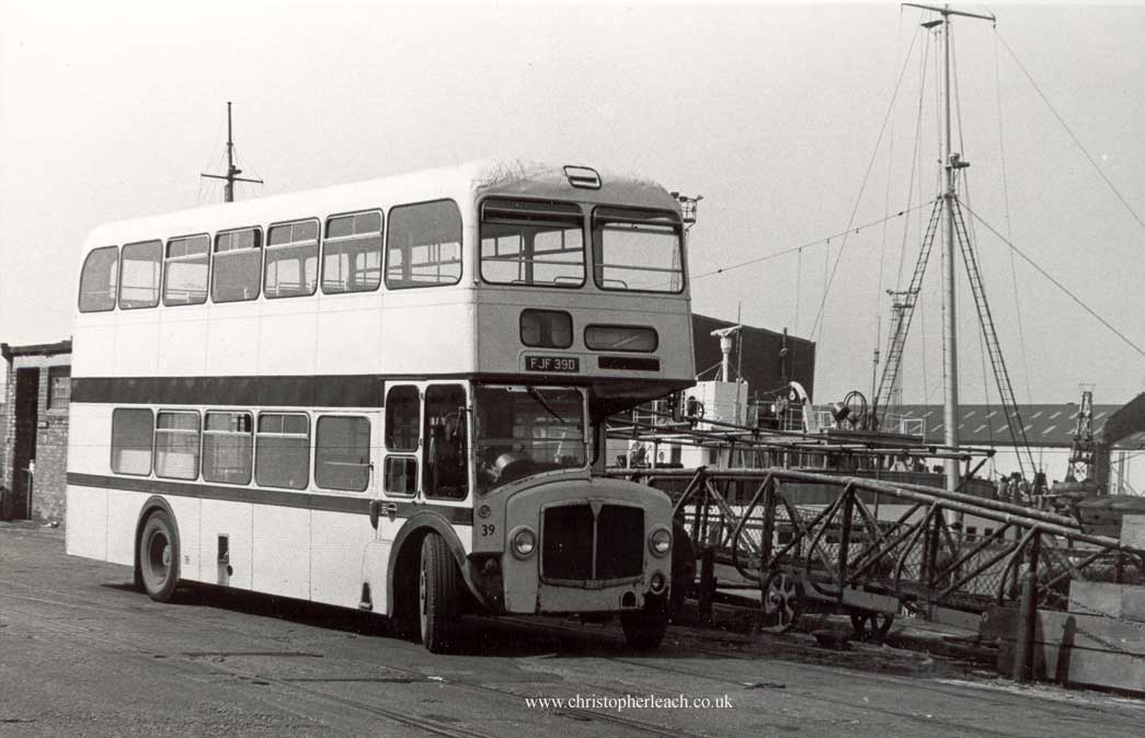 After withdrawl this former Leicester City Transport East Lancs bodied AEC Ronown found work aa a staff bus at Liverpool Docks.
