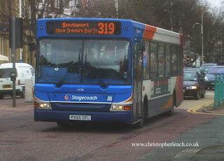 I hate returning to the places I haven't visited for recently as it spoils my memories of the past. Southport as well as having it's own corporation buses was served by Ribble. Fortunately as with my local former Midland Red certain services retain their old route numbers even if the buses are very different. There were about twenty-five buses at the Ribble gagage here and a similar number further inland at Ormskirk where this bus was heading. I imagine this Stagecoach Plaxton pointer is a Dennis Dart.