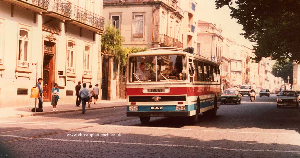 I rather liked the bright colours of this Utic bodied Leyland proudly displaying it's Leopard cat badge as it punded the stone sets in Porto.
