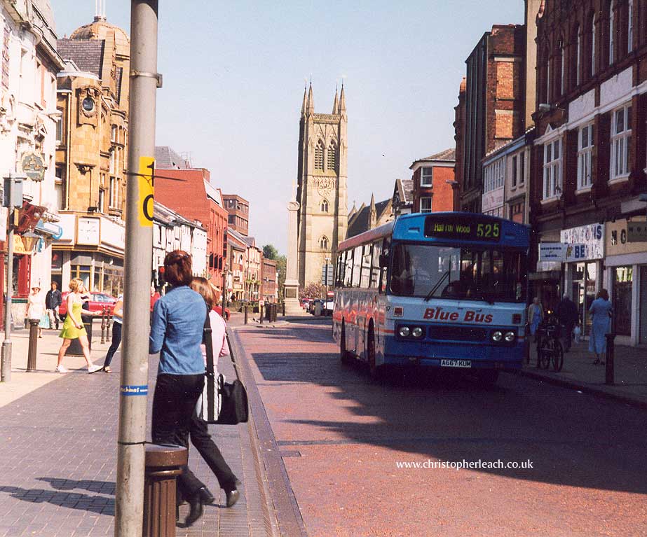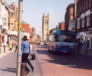 Like many small Independents set up by former big company manager's Blue Bus of Horwich grew quite big, and was even confident enough to buy new double-deckers and it's vehicles could be seen as far apart as Manchester and Preston where it threatened to take out through crippling competition the wonderful Fishwicks on the Chorley services. Fortunately matters quietened down in the North West when Blue Bus sold out to Arriva. Bolton was one of it's hot-spots and a former West Yorkshire Duple Dominant bodied Tiger was seen in the town during the Nineties.