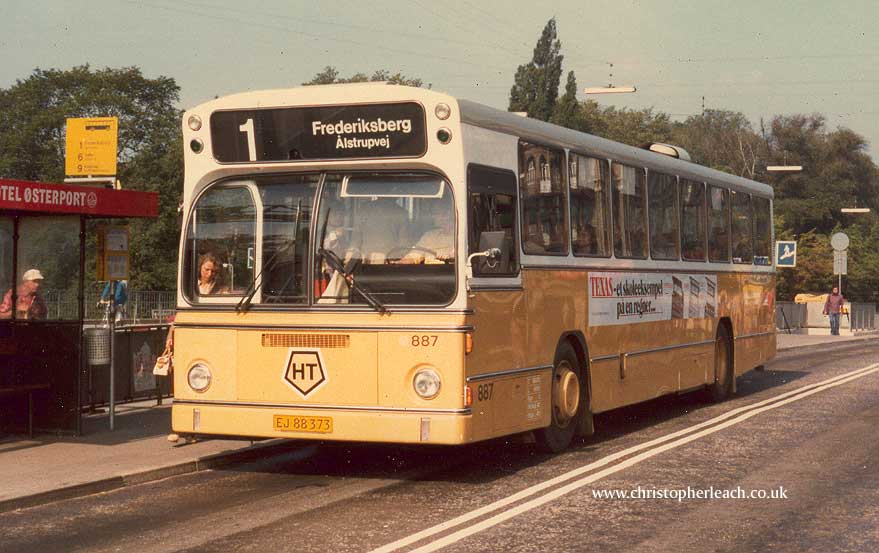 I must admit I tended to look down on this rather square Aabenraa bodied Volvo's in the Copenhagen fleet of HT as they lacked the character of the earlier well rounded Leyland-DAB BL1-2 Series buses that reminded me of Leyland Panthers bck home. The last of those DAB's was No.510 quickly followed by the first of these in 1970. However as you can see No.887 was still only one year old in 1979 and I came to rather like them as they made a distinctive 'whine'.