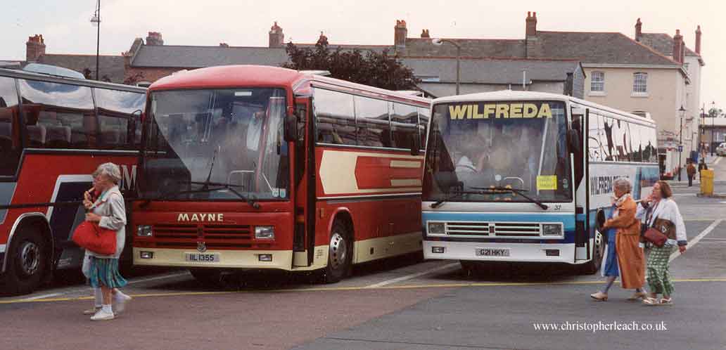 Wilfreda of Adwick-le-Street had a pair of these Scania coaches with Duple 320 bodies delivered in 1989. No.37 G21 HKY was parked alongside a re-registered Leyland Tiger of Mayne's F55 HNC at Plymouth Bretonside showing us a comparison between it and the bigger Duple 340.