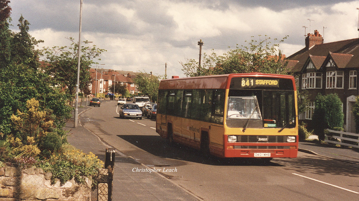 Midland Red North at Stafford had a number of interesting Leyland vehicles including Leopards and Tigers with a variety of bodywork. Not to be forgotten were also some unique Alexander N bodied Lynxs which had been tried by Citybus of Belfast which ran from here and as well as some conventional examples but these included yet another trial bus as 1016 was bought by Kelvin Central on behalf of the Scottish Bus Group. As no orders followed I think it remained the only Lynx to operate with them till it's sale in 1991. They had their faults but lack of speed wasn't one of them hence the distortion on this shot of D401 MHS as hurries down the Tixall Road toward Stafford from the Heywoods.