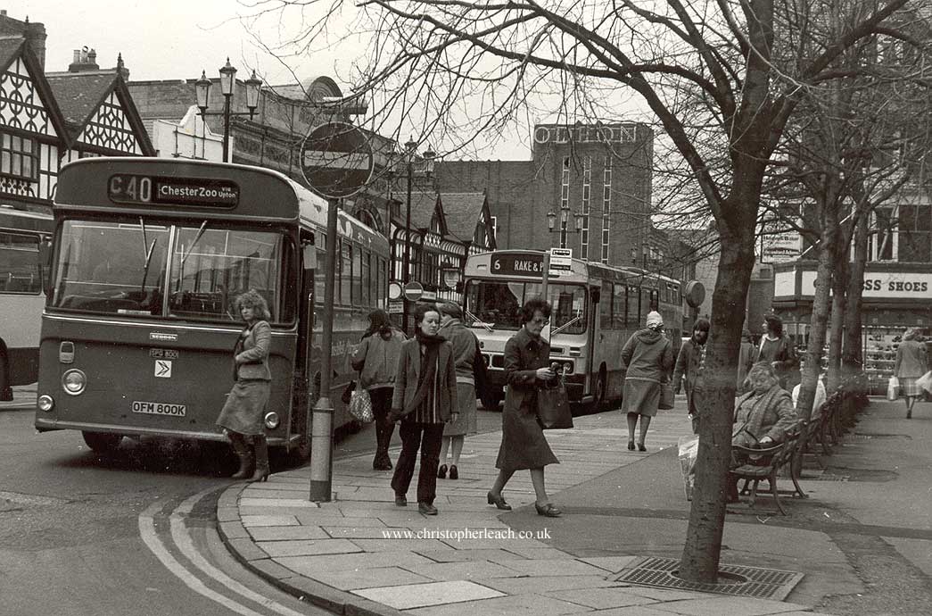 Despite it being quite bright everyone was well wrapped up with warm coats and scarfs in this 1982 view of lovely Chester once home to at least two of Crosville's 100 Seddon RU buses bought as an economy measure like SPG 800 numerically the last. The letter S stood for single, P for bodybuilder Pennine and G for Gardner powered. However as elsewhere they were not a great success and Seddon's entry into the then Leyland dominated bus market never took off despite this big order. As an alternative to the NBC tailored Leyland National some operators like City of Chester instead stuck to the reliable and more straightforward Leopard for it's single deck needs in the mid-Seventies like Duple bodied No.86..