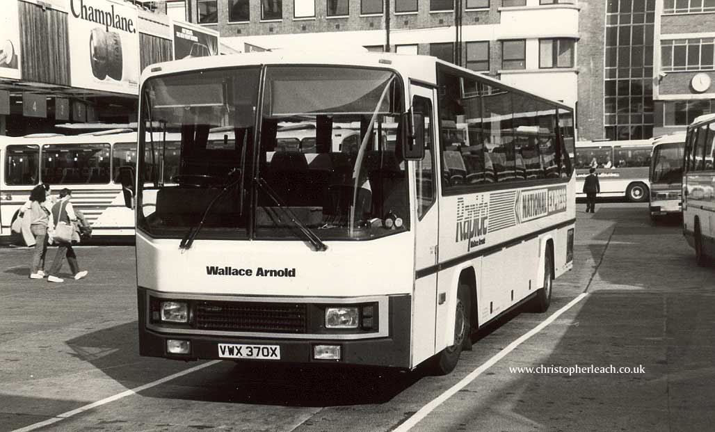The various contractors brought with them some much needed vehicle variety to National Express in the Eighties. Amongst the delights were these at the time rather futuristic looking Bova's like VWX 370X operated by Wallace Arnold on it's foray into express work. They were a partner in the British Coachways consortium which was formed to rival National Express but it failed not helped by poor facilities like the open-air car park London terminus at King's Cross which was not a patch well-appointed central Victoria Coach Station. So Wallace Arnold's interest mean't it got involved in Rapide work for a while.