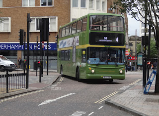 Last week when I went to Wolverhampton I almost left my camera at home but I'm glad I didn't as the West Midlands Dennis Trident-Alexander 4535 painted in the old Wolverhampton Corporation green and cream colours had eluded me. I had seen it several times but I was always just too late to get a photo but surprisingly that day it stopped right opposite my friends shop on of all things Route 4 which normally has branded Wright bodied Volvo single-deckers on it. Previously when I glimpsed it before it was going to Northwood Park but I expect it was covering for a breakdown.